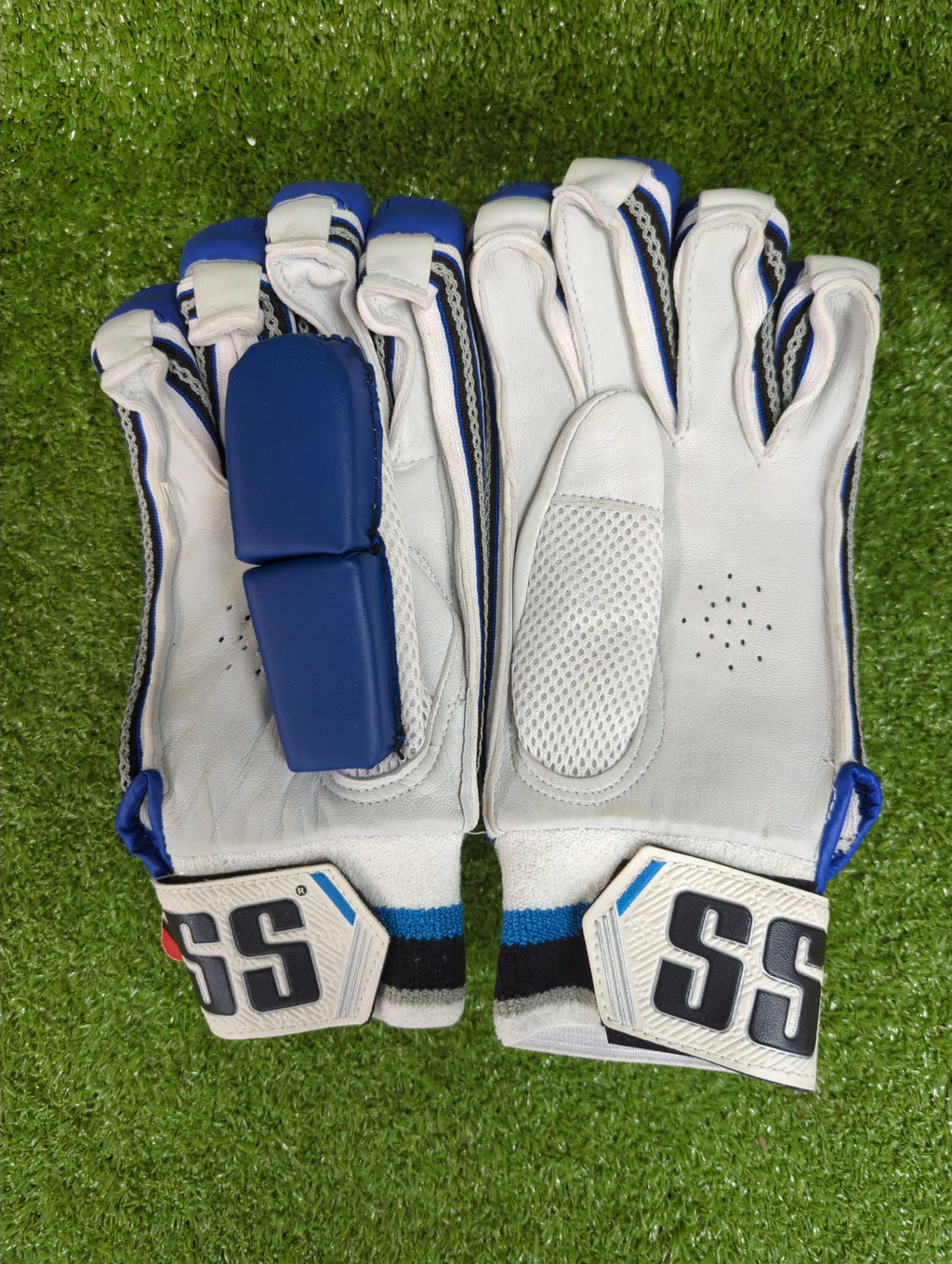 Q: Is the SS Platino Blue suitable for club cricket? A: Yes, the SS Platino Blue gloves are designed specifically for adult club cricketers, offering reinforced finger protection against leather balls.